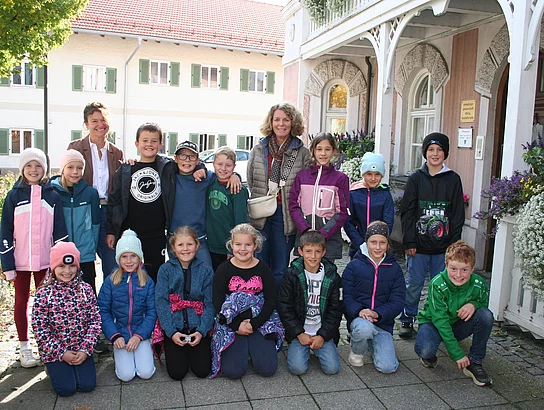 " Was gefällt Dir an Deinem Beruf?" "Wieviele Häuser gibt es in Emmering" "Wieviel Wasser wird in Emmering verbraucht" - die 16 Mädchen und Jungen wollten es genau wissen. „Unser neues Rathaus in Emmering kennen die meisten Kinder, aber die einzelnen Sachgebiete sind im Rathaus Aßling untergebracht“, begründete Claudia Streu-Schütze den Besuch der Schülerinnen und Schüler mit ihrer Klassenlehrerin Katja Knothe in der Ampletzer-Villa. Für eine ausführliche Fragerunde nahm sich das Gemeindeoberhaupt gerne Zeit und freute sich über das große Interesse der Kinder. Bei jedem Sachgebiet machte die Schülergruppe dann einen Abstecher und ließen sich alles genau erklären. In der Finanzabteilung drehten sich die Fragen natürlich rund ums Geld. Im Bürgerbüro bestaunten alle den neuen Apparat, an dem man vor Ort Passbilder erstellen kann und hörten sich alles zum Thema Ordnungs- und Sozialwesen/Gewerbe- und Gaststättenrecht an. Ein sehr kurzweiliger Vormittag. Zum Schluss gab es ein kleines Präsent für die jungen Emmeringer, die sich dann freudestrahlend zum Erinnerungsfoto aufstellten.