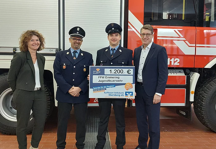 Die Raiffeisen-Volksbank Ebersberg spendete im Rahmen ihrer Weihnachtsaktion 2024 insgesamt 6.000 € an die Jugendfeuerwehren der Verwaltungsgemeinschaft Aßling. Davon bekam die Jugendfeuerwehr Emmering 1.200 € zugeteilt.